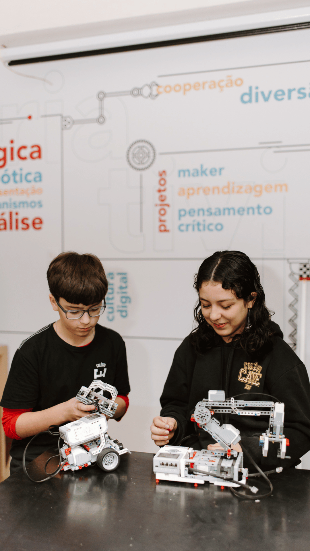 Oficina de criação de projetos, em que os alunos participam de toda a construção de um projeto: concepção, pesquisa e planejamento, orçamentos e prazos, programação, execução e entrega final. Serão desenvolvidos projetos de robótica e eletrônica, sendo que, no 9º ano, os alunos desenvolverão um projeto de eletrônica avançada.